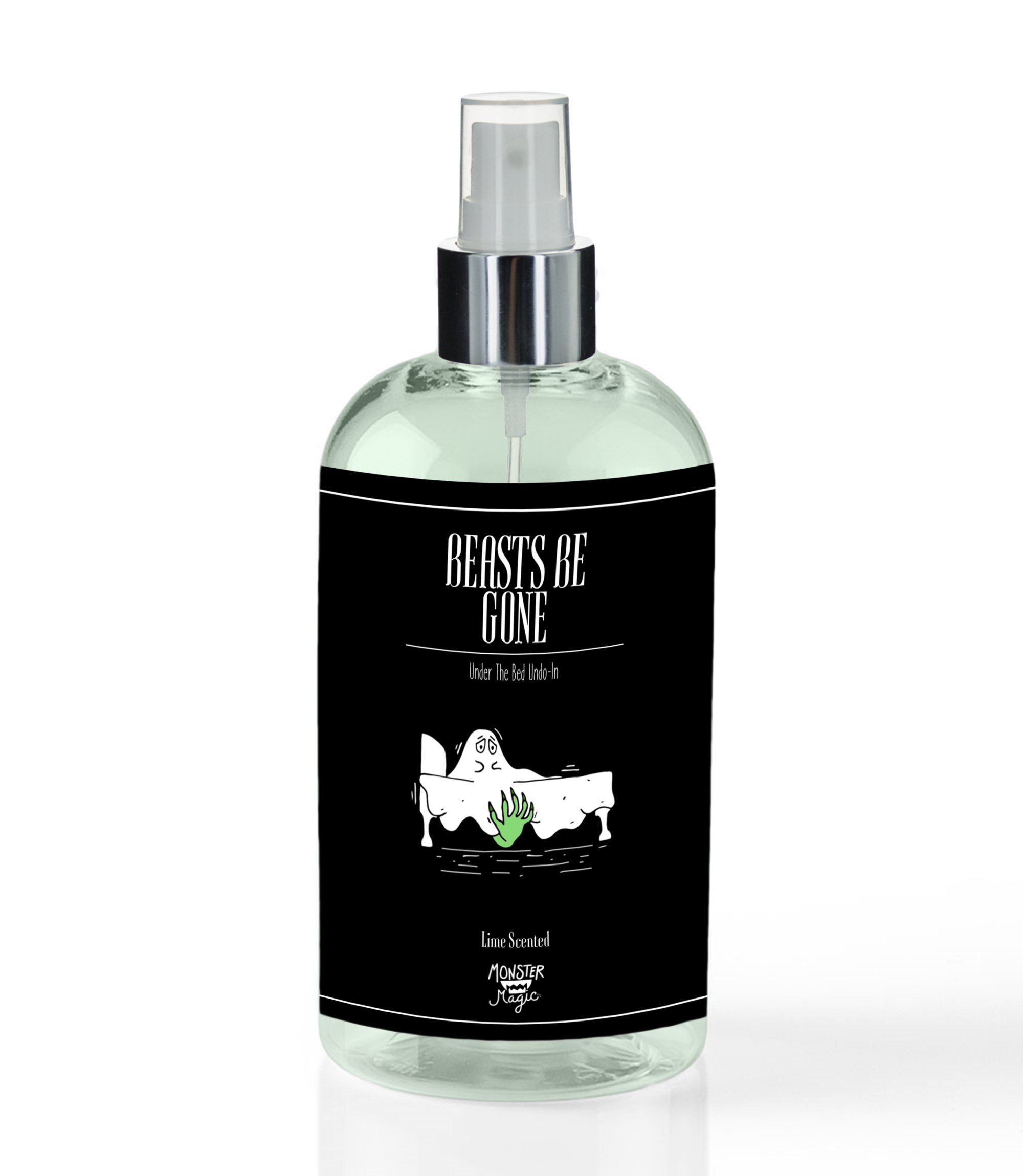 Got Beasts? This scented spray scares away your typical Monster Under The Bed. After dissolving the monster, you'll be sleeping sound with a wonderful lime fragrance.
